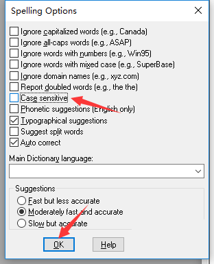 4、最后去掉勾选上case sensitive 选项之后,点击ok按钮。