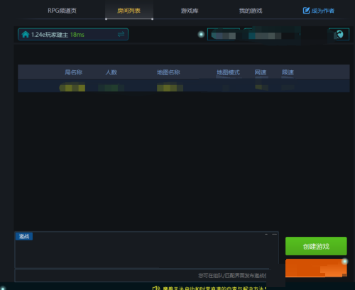 1、首先打开11对战平台,以RPG为例,点击图中标注的创建游戏,会发现收藏的游戏启动不了。