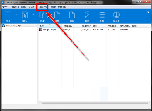 3、接着打开压缩文件后,点击菜单栏里的“视图”。