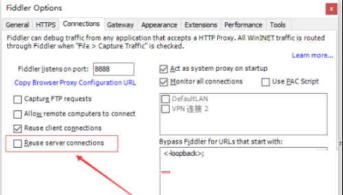 6、最后勾选上 reuse server connections 选项之后,点击 ok。