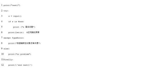 1、首先基础异常处理try/except语句用来检测try语句块中的错误,从而让except语句捕获异常信息并处理。如果你不想在异常发生时结束你的程序,只需在try里捕获它。try的工作原理是,当开始一个try语句后,python就在当前程序的上下文中作标记,这样当异常出现时就可以回到这里,try子句(与try同级的except等)先执行,接下来会发生什么依赖于执行时是否出现异常。如果当try后的语句执行时发生异常,python就跳回到try并执行第一个匹配该异常的except子句,异常处理完毕,控制流就通过整个try语句(除非在处理异常时又引发新的异常)。如果在try后的语句里发生了异常,却没有匹配的except子句,异常将被递交到上层的try,或者到程序的最上层(这样将结束程序,并打印缺省的出错信息)。如果在try子句执行时没有发生异常,python将执行else语句后的语句(如果有else的话),然后控制流通过整个try语句。不管在try有无异常抛出时都会执行本级try对应的finally。