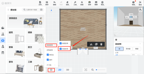 4、最后想要显示顶面家具,在页面最下方的显示/隐藏—软装家具,点击勾选顶面家具即可。