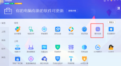 3、最后在“工具箱”面板选择“硬件检测”工具,在打开的工具箱中可以看到,CPU,主板,硬盘,显卡的温度。