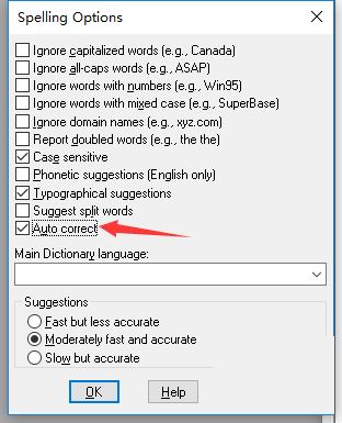 4、最后去掉勾选上auto correct选项之后,点击ok按钮。