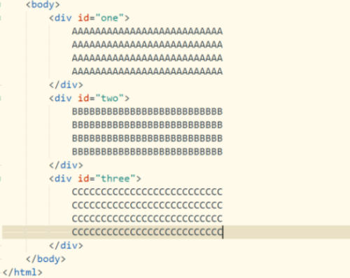 第二步,在标签中,插入三个div标签,分别设置不同的内容。