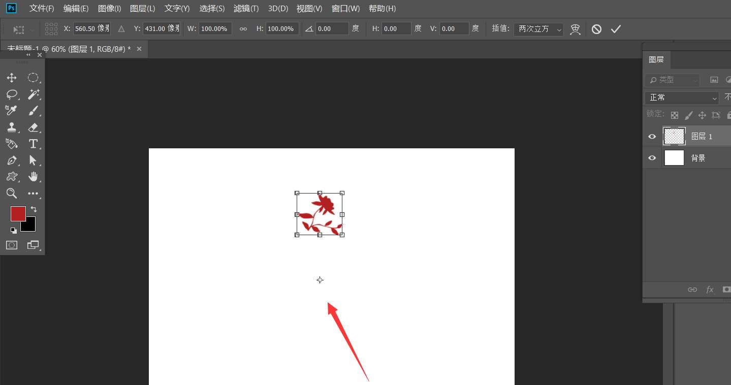 3、接着,我们按ctrl+t自定义花朵图案,如下图,将中心点拖动到图案下方。