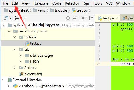 点击了的pycharm的菜单中的 edit的选项。