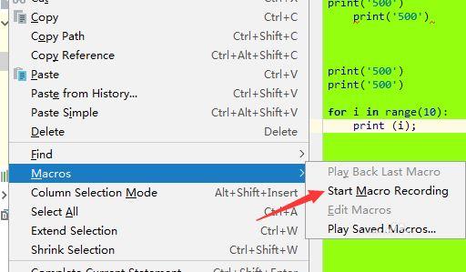 选中了macros的选项之后,弹出了下一级菜单选中为 start macro record的选项。