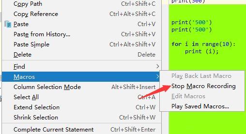 在代码编辑当中,输入完成之后,点击 stop macro recording的选项。