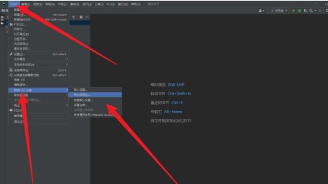 接着在文件选项卡的下拉菜单中点击管理IDE设置