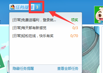 1.3鼠标左键点击“qq每日任务提醒浮动条”上数字位置,打开设置框,选择“隐藏任务提醒”,如图