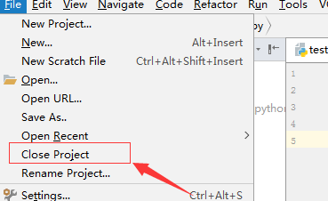选中了file的菜单之后,弹出了下拉菜单选中为 close project 选项。