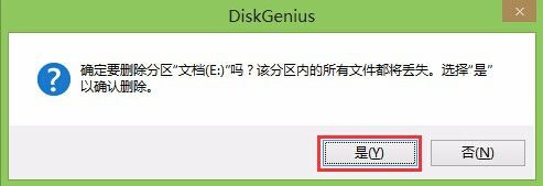 在弹出的DisGenius提示窗口中,点击“是(Y)”确认删除选中的分区。