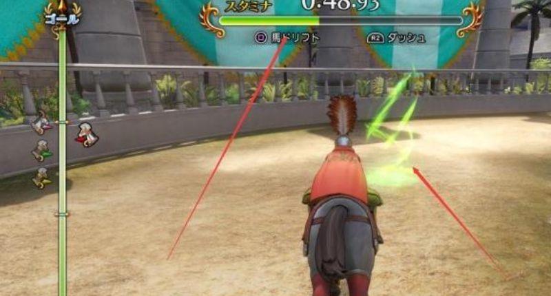 7、比赛途中上方的绿条是马的精力,记得要吃赛道上的绿光来恢复。如果马的精力为零那么速度为大幅度减慢和数秒后才恢复精力。比赛中即使没有得到第一也不会对剧情发展有影响,比赛完之后可以得到一个流程奖杯。