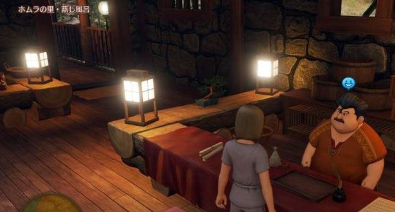 2、剧情后往右上角的温泉走,去到之后和老板对话,对话后会更换衣服,换完衣服之后进去左边的男汤。