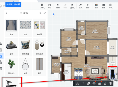 首先,我们在何距驼窗台上放置一个跑步机,选中将其拖入到户型图,如下图。