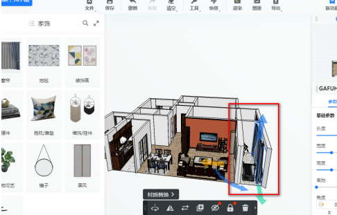 选中窗帘,我们将窗帘拖入户型图,如下图。