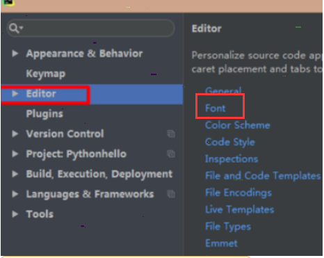 3、选择editor,点击右侧的font
