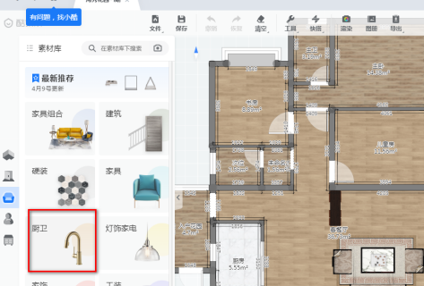 在右侧工具栏中,选择厨卫工具图标,如下图。