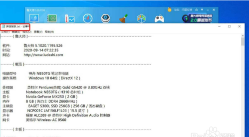 在询问是否打开报表的对话框中,点击“确定”选项,鲁大师打开以TXT纯文本格式保存的电脑配置详细信息。