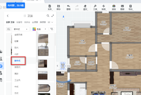 在风格处,设置为新中式,如下图。