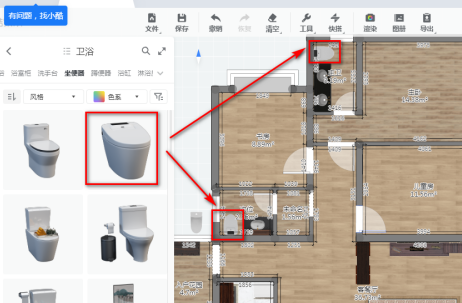 选择坐便器将其拖入户型图,如下图。