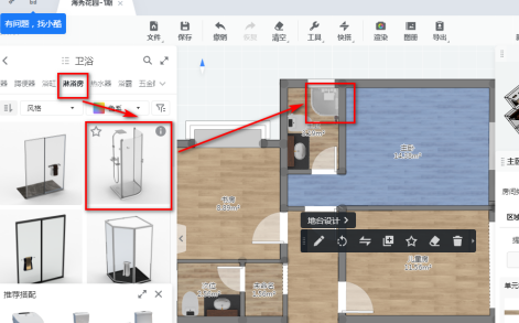 在主卫中设置洗浴房,如下图。