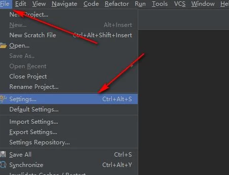 先点击“File”菜单,接着点击“settings”菜单,这是用于设置Pycharm的选项的菜单。