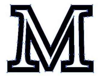大写字母M选中后,右击鼠标,在弹出的对话框中,选择创建轮廓命令,此时可以看到,M会变成下图所示的样式。