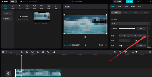 拖动素材以后,就可以在画面里添加关键帧了。