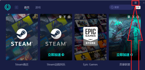 在网易UU加速器的主界面中,我们点击右上角的设置选项,如图所示。