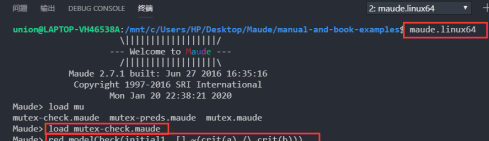 终端->新建终端可以在当前文件夹打开vscode内置终端,来运行maude或者full-maude程序。