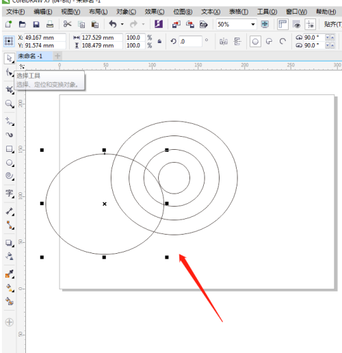 1、首先打开CorelDRAW ,如图,画布上有多个交叠放置的圆形。