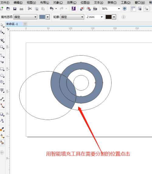 3、接着用智能填充工具在需要分割的位置点击,被点击的位置会自动填充颜色以作识别。
