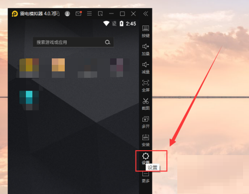 1、首先,我们先启动雷电模拟器,接着点击侧边栏的设置选项。