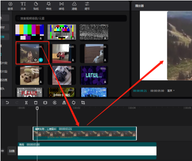 在工具栏中,找到或者添加另一个素材,然后用鼠标把素材拉动到刚添加视频条的上方即可实现画中画,如图所示。