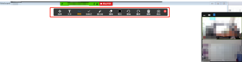 对于接受屏幕共享的参会者来说,也是可以对他人共享出来的画板进行适当编辑的,只要点击白板上方三个小点的悬浮工具按钮,就可以展开工具栏,选择不同的方式在画板上进行加注和编辑;