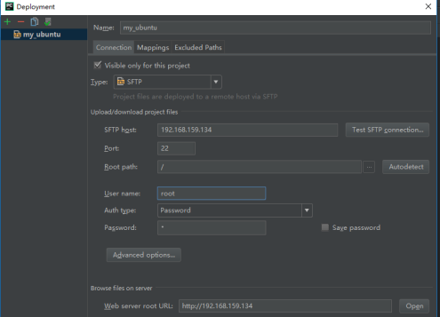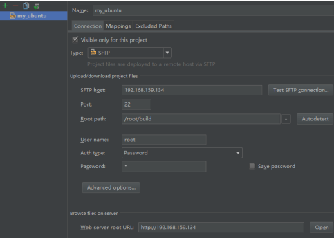 然后会打开这个界面,随便起个名字,type选择SFTP.