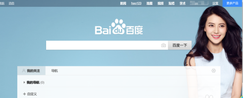 选好之后,任意点击空白处就可以返回百度的首页页面,这时,我们就可以看到刚刚我们换上的女神高圆圆的美丽皮肤了,如图所示。