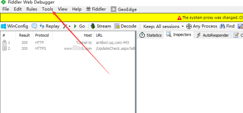 点击tools菜单之后,弹出了下拉菜单选中 fiddler options选项