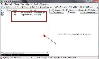 打开fiddler,fiddler会及时抓取正在进行网络通讯的所以信息