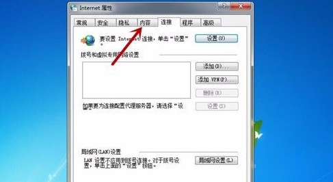 之后在Internet选项选项中,点击上方选项的“内容”选项,里面是对内容的家庭安全、证书、自动完成、源和网页快讯的设置界面。