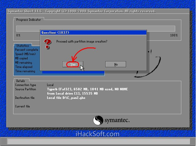8、出现确认建立镜像文件窗口,单击“Yes”开始备份(未单击“Yes”前若发觉上述某步骤有误请单击“No”取消,然后重来)(如图所示)。