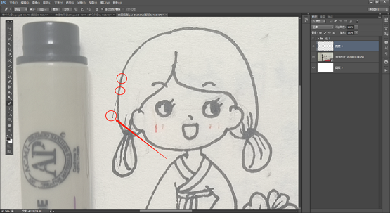 3、用鼠标单击画布中的任意位置,作为第一个路径点,这时会出现一个小圆圈,表示路径的起点。在需要画曲线的地方,继续单击鼠标,可以画出直线和曲线路径点,路径会自动弯曲,形成平滑的曲线。我们按可以调整的位置和方向(如图所示)。