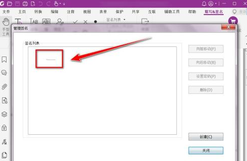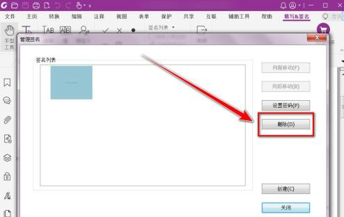 在管理签名窗口中,选中需要删除的签名。