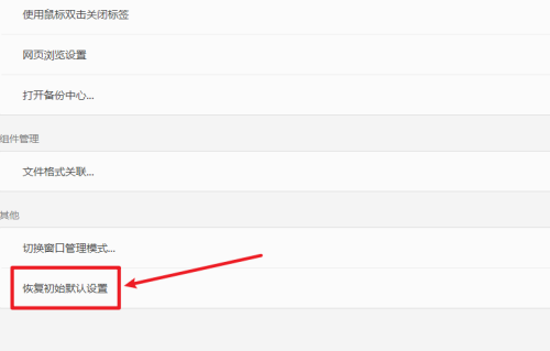 3、在打开的窗口界面中,点击“恢复初始默认设置”选项,如下图所示。