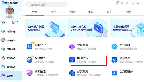 3、在显示出来的选项中,用户选择电脑诊所功能来进行设置,如下图所示。