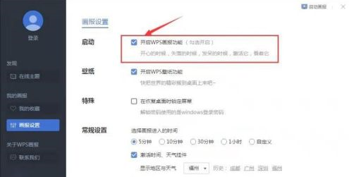 在画报设置页中,将“开启WPS画报功能”取消勾选,完成