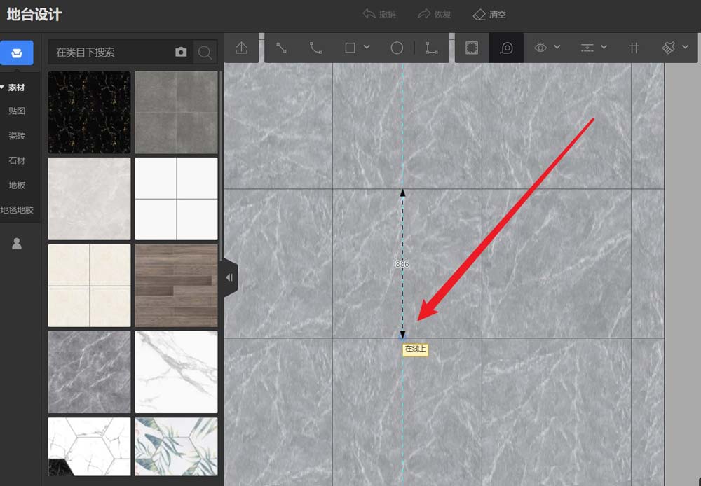 第三步:然后点击地砖的一条边,在蓝色虚线上向下移动鼠标,在地砖的另一条边上单击。