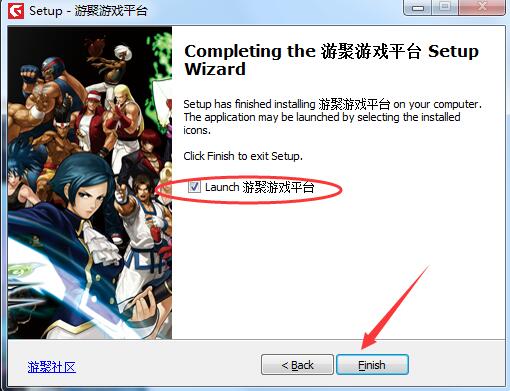 8、最后勾选"launch游聚游戏平台“选项,再点击finish,就可立即体验游聚游戏平台软件了,如下图所示。